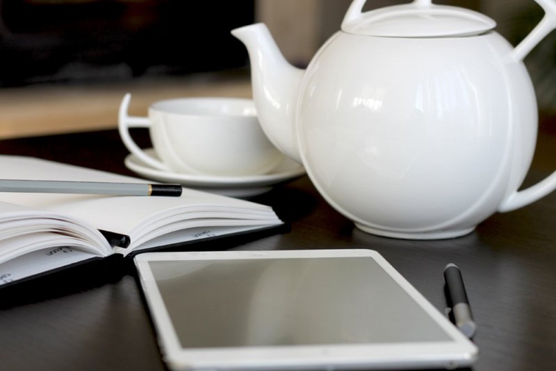 Чай с блокнотом и планшетом