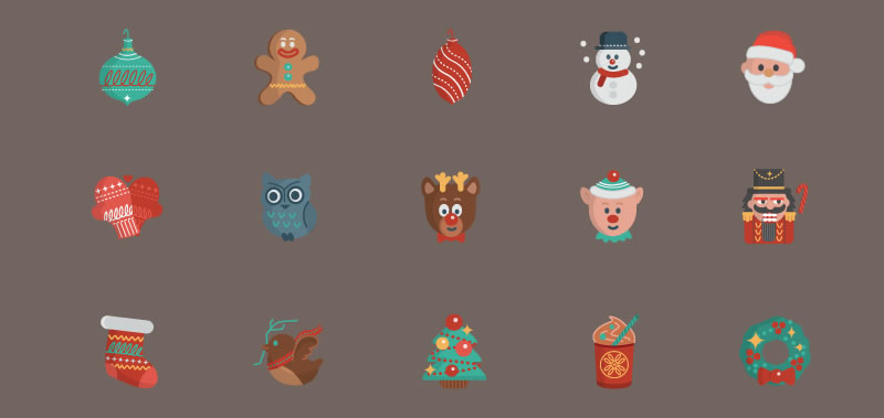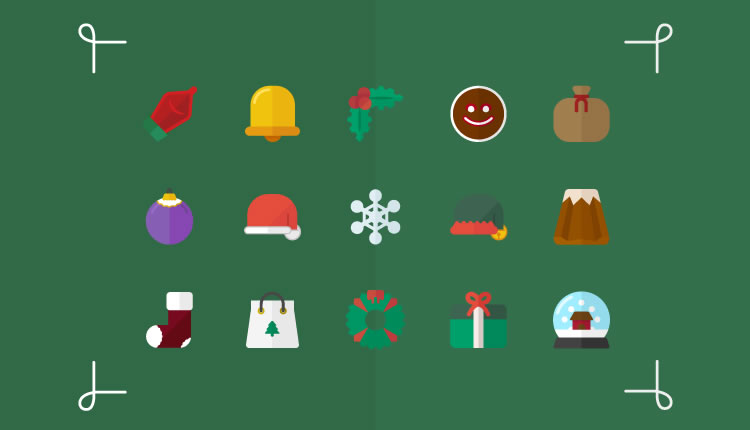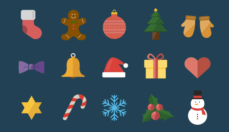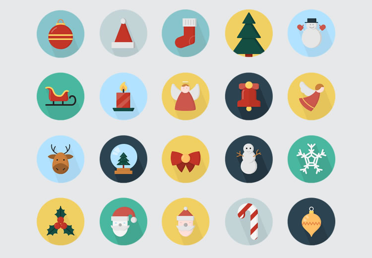 30 Рождественских иконок с длинной тенью в Flat стиле