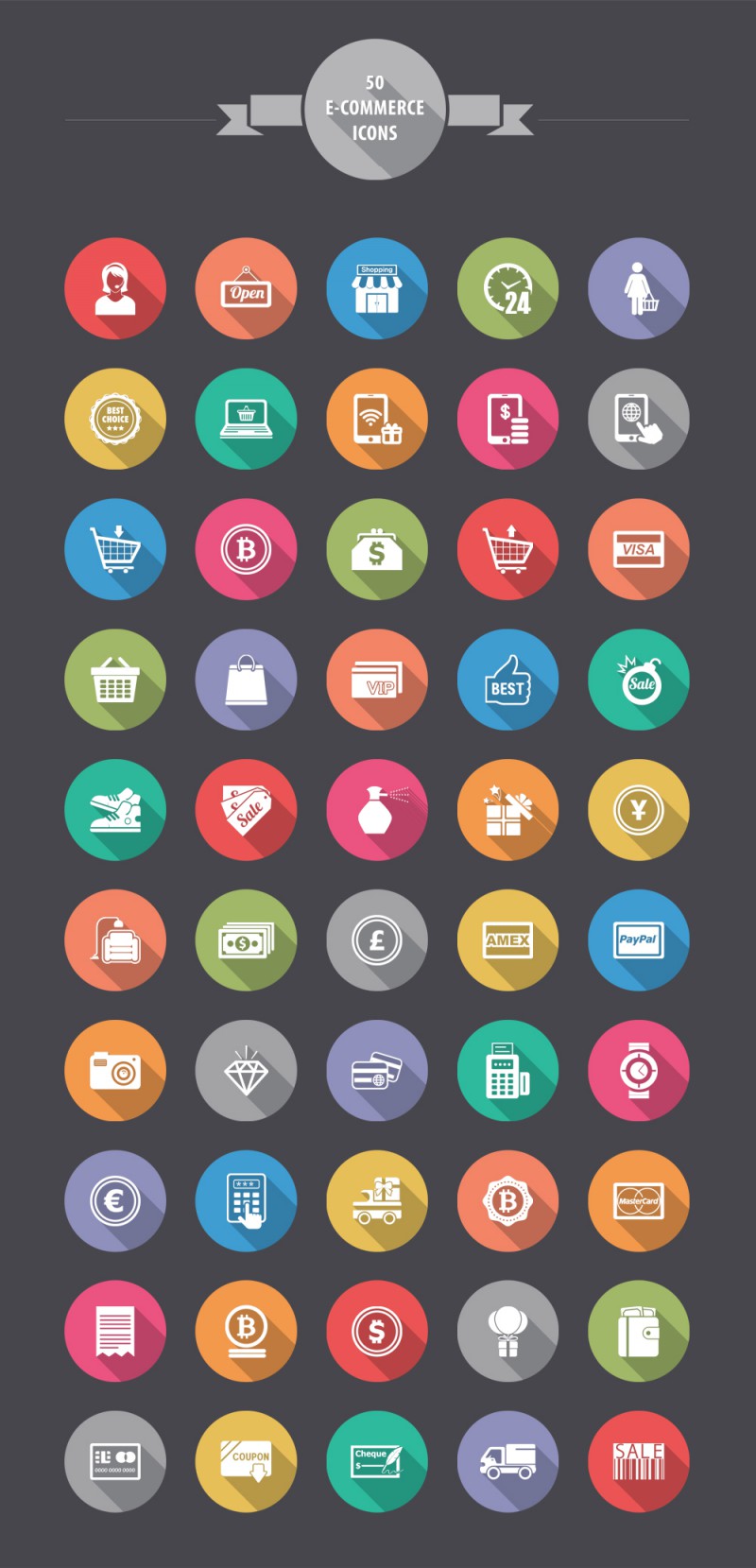 Коммерческие иконки в стиле Flat