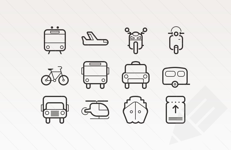 Стильные иконки разнообразного транспорта