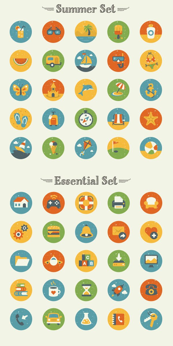 50 винтажных Flat иконок