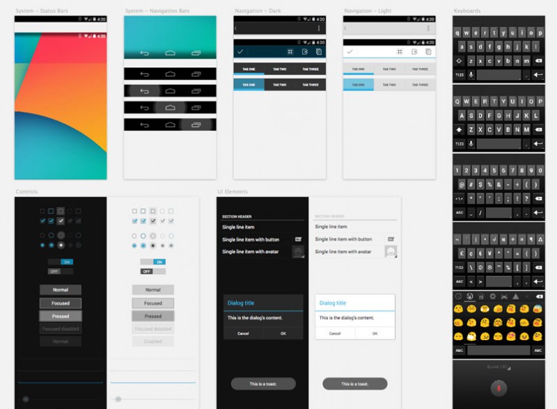 Привет, друзья! Представляю Вам сегодня отличную подборку элементов дизайна от Android разнообразных версий. Я думаю, что подобного рода подборки будут полезны практически всем дизайнерам. К тому же UI исходники, которые здесь представлены совершенно бесплатны.