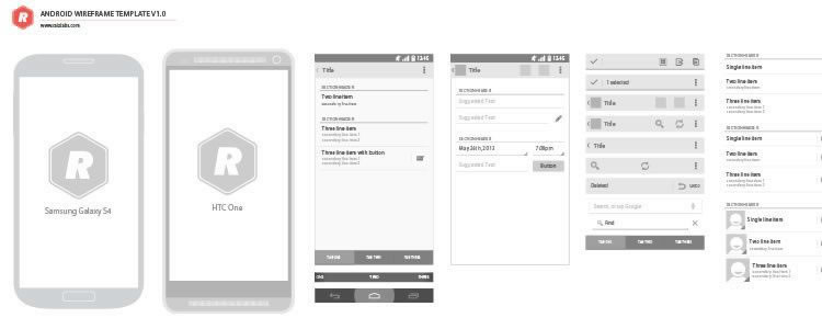 Макет каркасных экранов Galaxy Nexus и Nexus 4