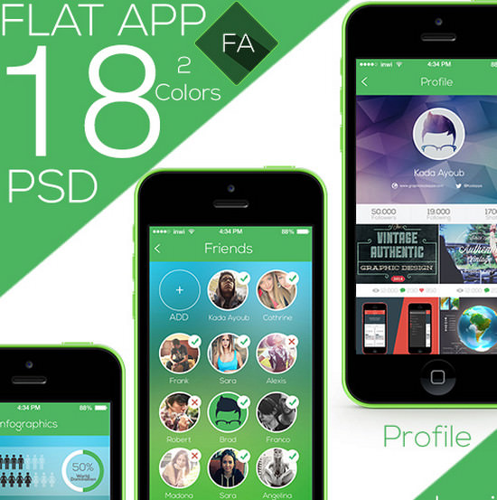 UI исходники дизайна для мобильного приложения в Flat стиле
