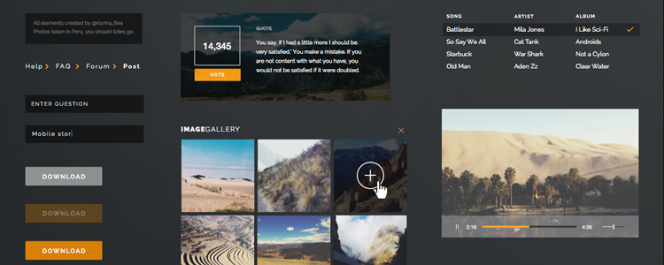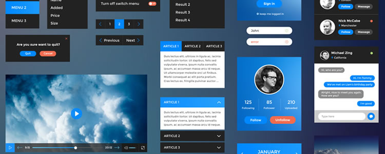 Чтобы помочь Вам с работой для будущего веб сайта или же приложения, здесь Вы сможете бесплатно скачать лучшие UI элементы которые правильно и красиво оформлены, которые дадут Вам правильный визуальный образ для будущей работы.