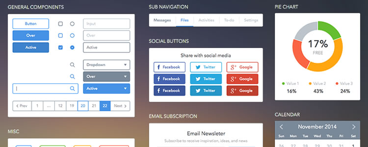 Одной из подобных вещей являются красиво оформленные UI элементы для веб — приложений, которые, конечно же, совершенно бесплатные. Комплект пользовательского интерфейса может быть чрезвычайно полезен, когда Вы хотите сделать своё приложение быстро, без ущерба эстетики. Хорошо и удобно разработанный UI может помочь Вам построить собственный визуальный образ, таким образом Вы сможете увидеть конечный продукт, вместо того чтобы смотреть на многочисленный набор кнопок и флажков, которые хаотично расставлены.
