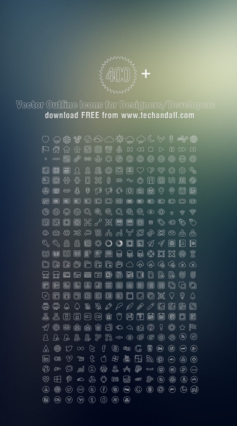 400+ векторных иконок с тонкими линиями