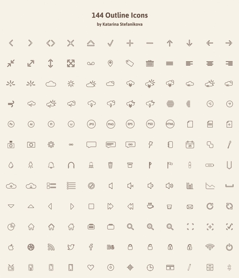 144 иконки в PSD с тонкими линиями