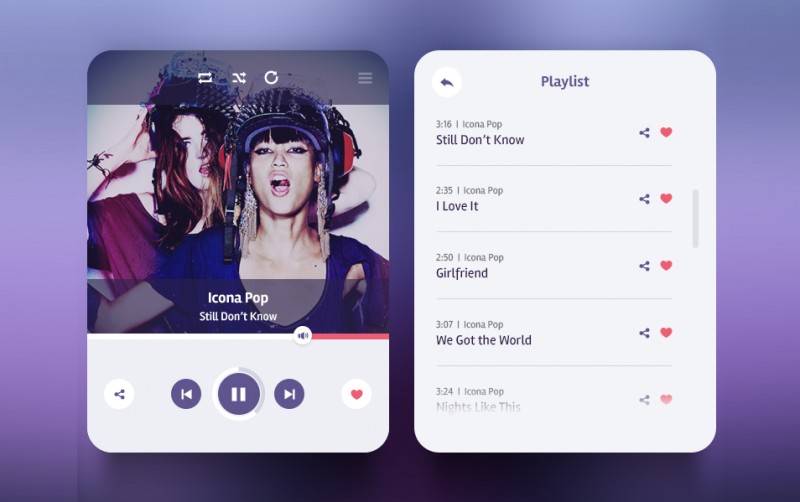 Красивый музыкальный плеер для сайта в PSD