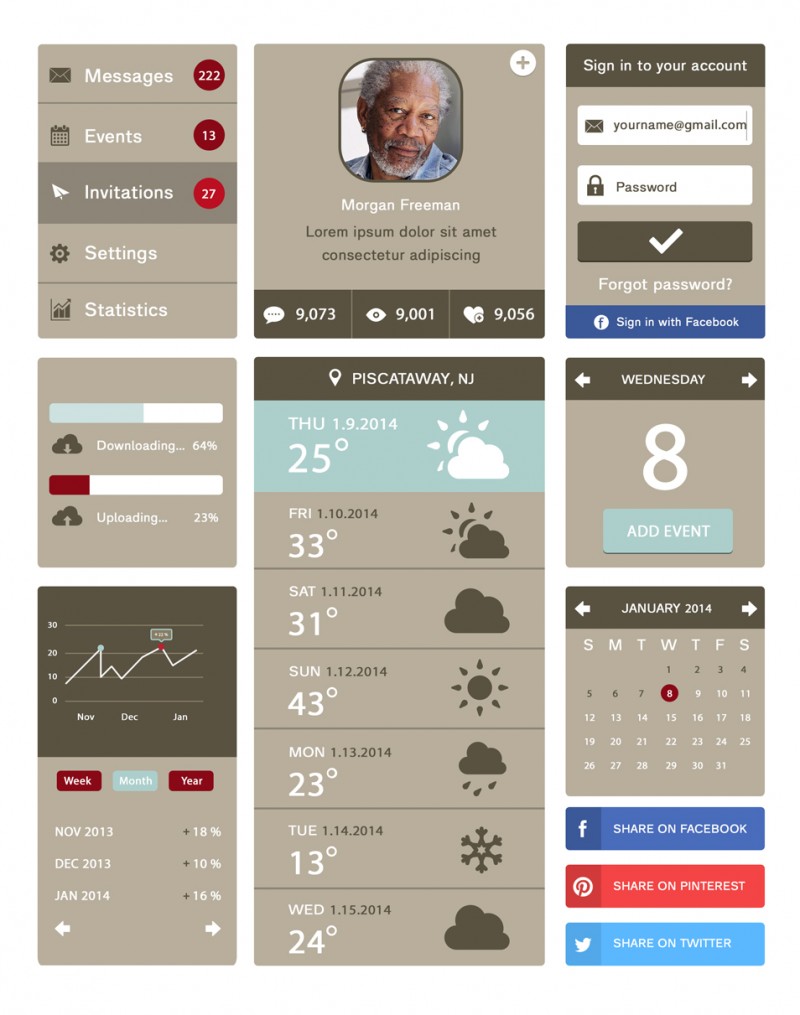 Совершенно бесплатная UI подборка в PSD