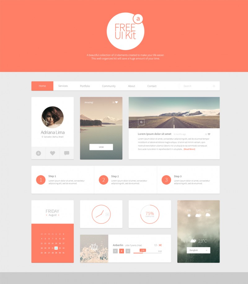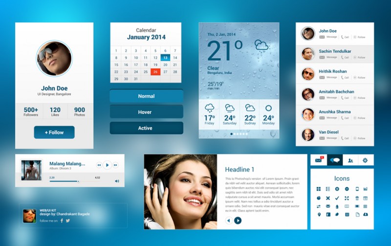 Здесь Вы сможете найти множество UI элементов самых разных стилей, а так же кнопки, иконки, разнообразные плееры, виджеты и макеты современных мобильных девайсов. В общем качайся не закачайся :)