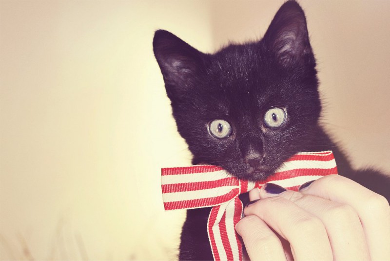 Чёрный кот с бантиком