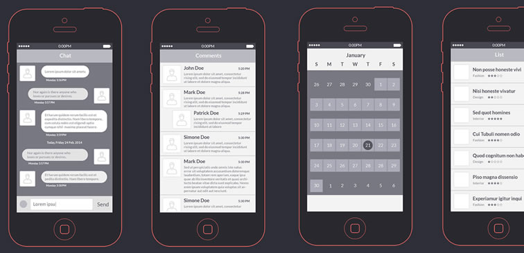 Мобильные UI элементы в PSD и в чёрно белых тонах