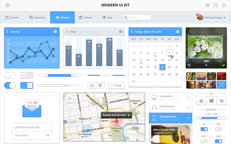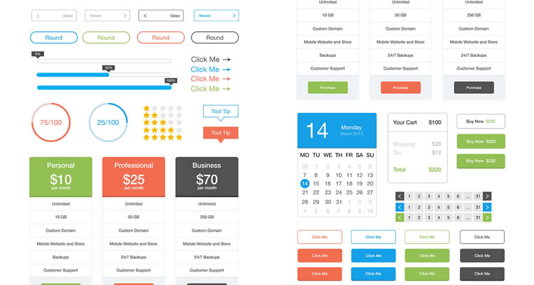Здравствуйте, друзья. В этой подборке Вы сомжете без проблем скачать самые свежие, качественные и бесплатные UI и GUI элементы для сайта, так и для мобильных приложений.