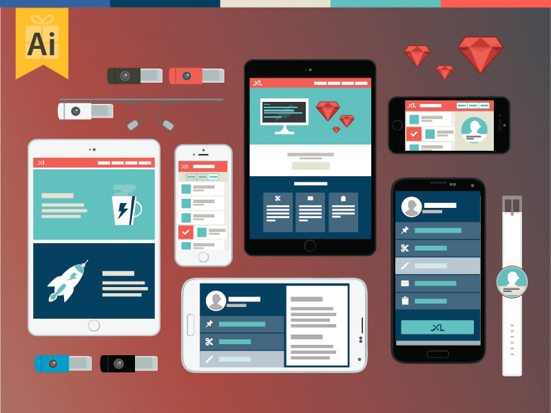 Адаптивные и мобильные векторные макеты в Flat стиле