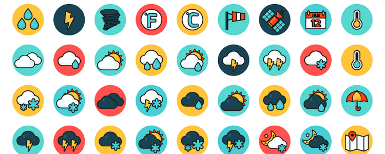 Векторные и круглые иконки на тему погоды