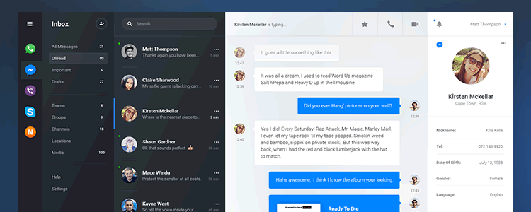 Макет чата в формате PSD