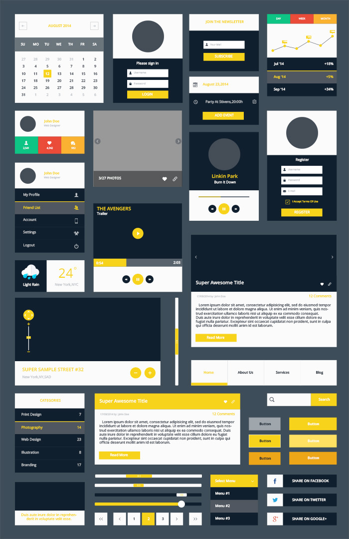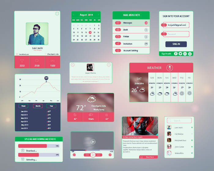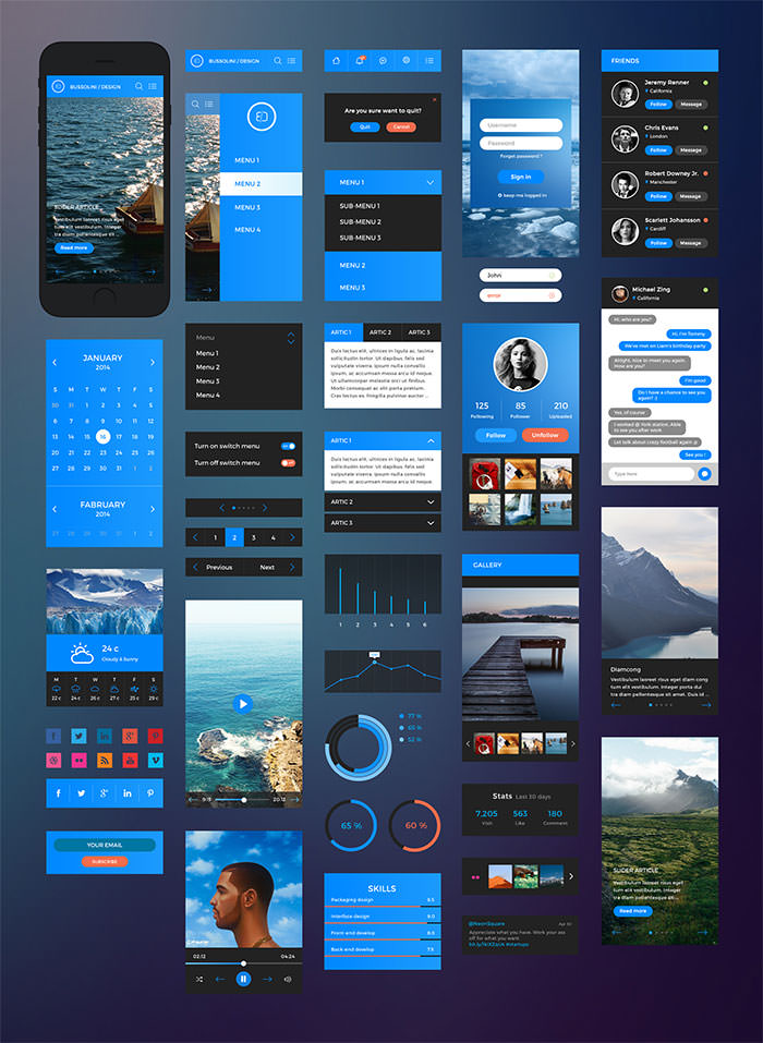 Привет, друзья! Предлагаю Вашему вниманию взглянуть на эту очередную и совершенно бесплатную подборку свежих UI исходников на разную тематику, а так же в минималистическом и Flat стилях. Так что качайте и наслаждайтесь, друзья.