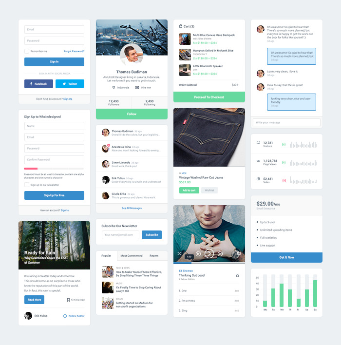 Светлые и красивые UI исходники для будущего дизайна на сайт