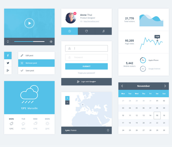 Скачать множество новых UI элементов в Flat стиле и в формате PSD