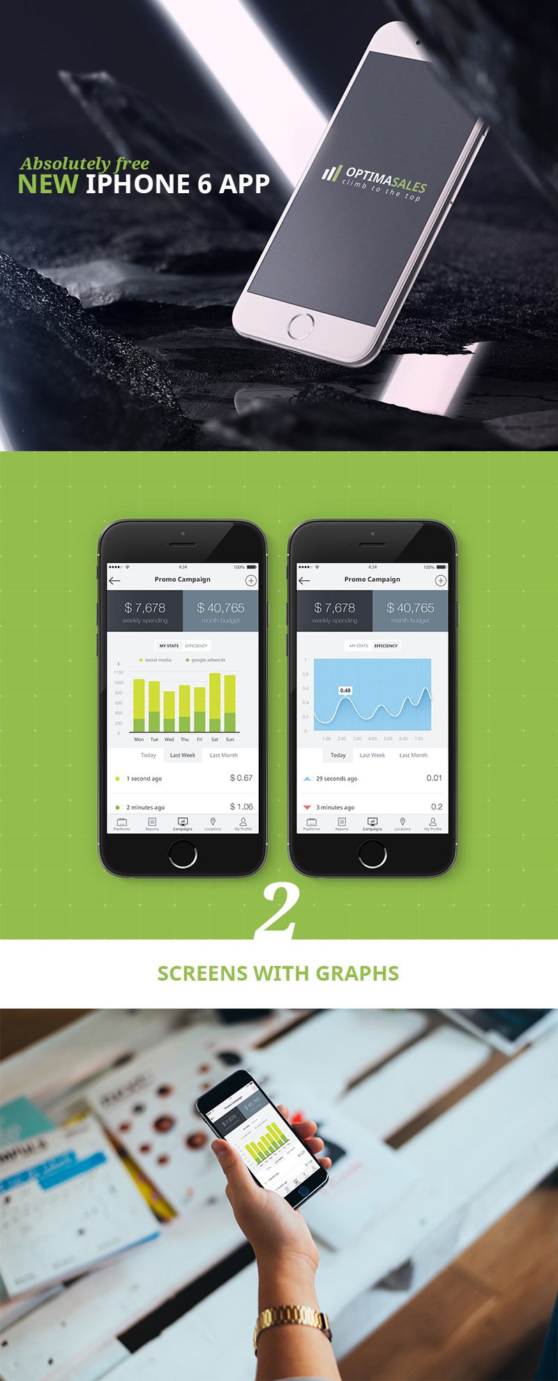 Перспективные макеты дизайна для приложения в PSD для Android L и iPhone 6 Plus