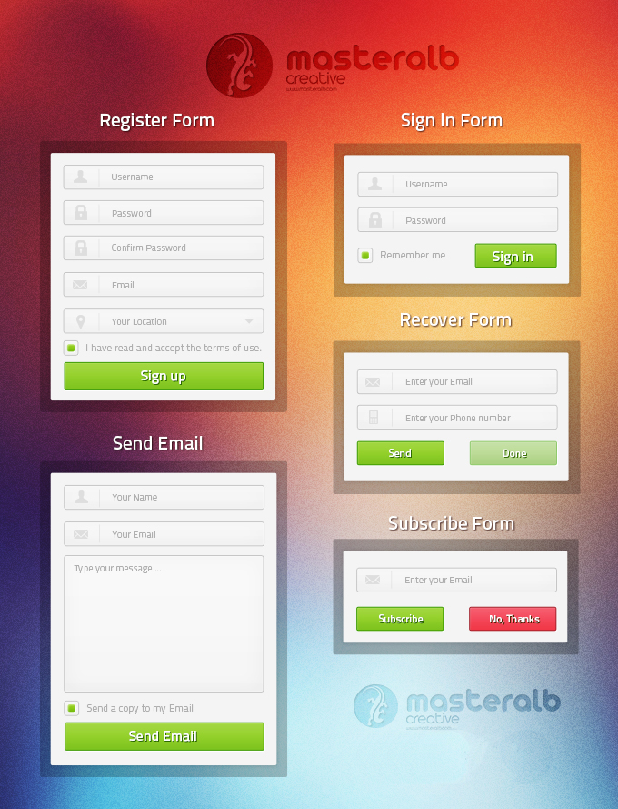 В основном здесь собраны новые, за июль, элементы дизайна. Тут можно скачать формы, кнопки, формы поиска и так далее.