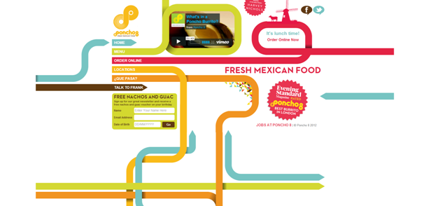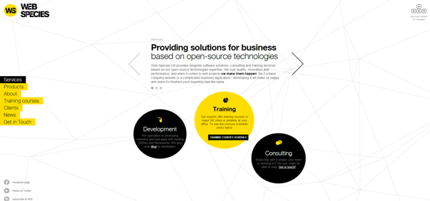 Что имеется в веду? Вы наверное уже привыкли к таким сайтам на которых всё стандартно. :-) А именно Обычные ровные блоки, в которых находится какая либо информация. А в этом случае всё наоборот, используются более кривые линии чем обычно. И согласитесь смотрится довольно красиво.