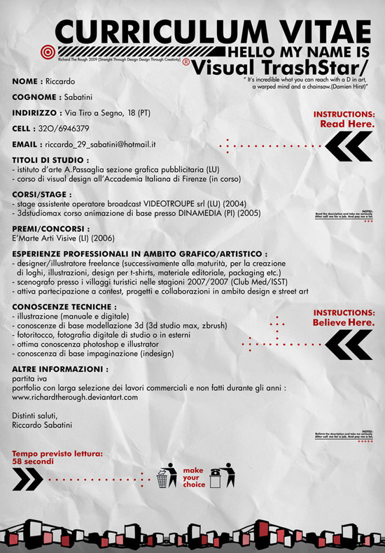 Вот как раз эта подборка креативно оформленных резюме заставит Вас задуматься. Но ведь согласитесь, креативно сделанный и правильно оформленный лист Вас существенно выделит из сотни скучных резюме. Так что смотрите и наслаждайтесь :-)