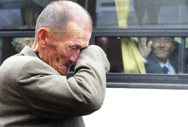 Северокорейский пожилой человек провожает своего южнокорейского брата после долгожданной встречи