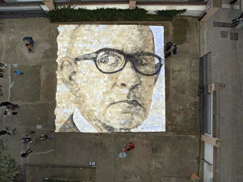 Некоторые портреты получились ну просто очень гигантскими, которые можно рассмотреть только с большой высоты. И конечно же такие работы очень сложны и затратны, в общем это и так видно на ниже представленных фотография.