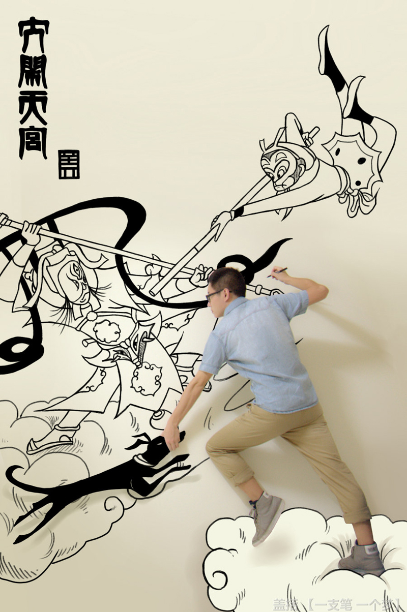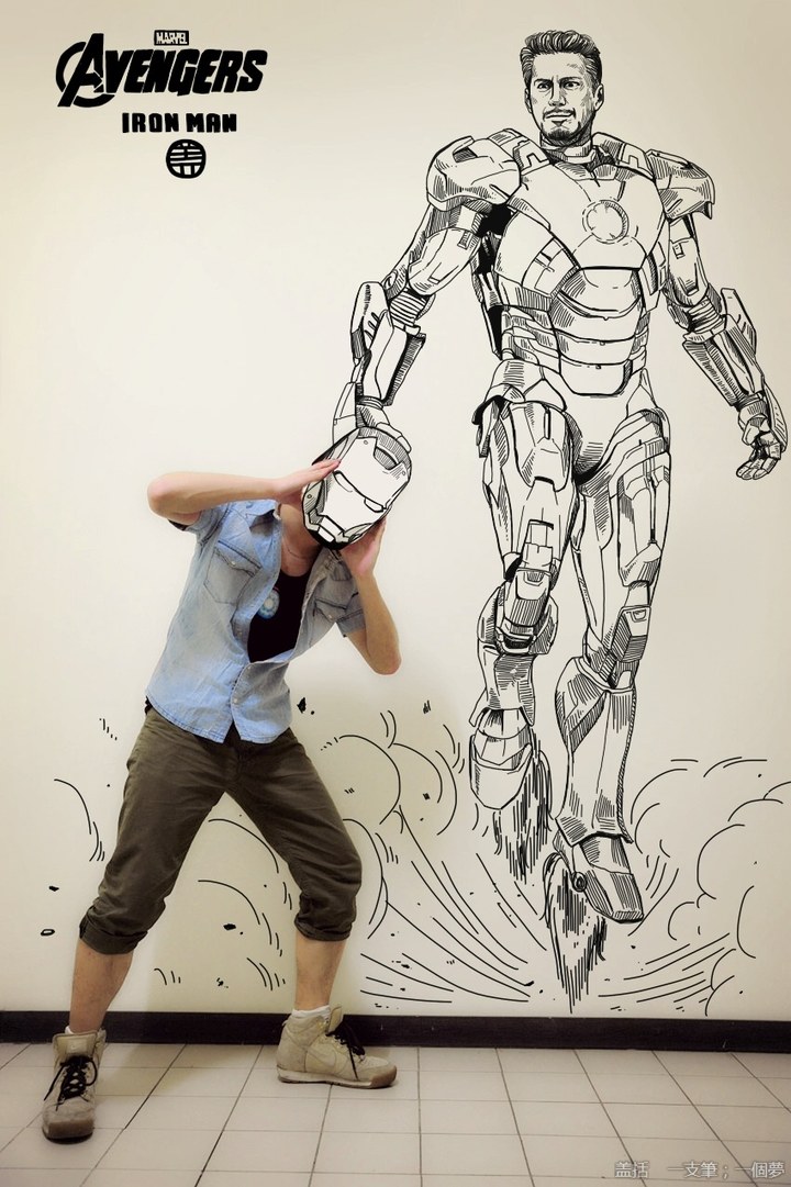 Эти замечательные иллюстрации делает художник из Пекина (Китай) — Gaikuo. Он популярен не только тем что очень талантливый художник, но и тем, что он ещё использует самого себя на фоне своих произведений. В основном это герои из его любимых комиксов, фильмов и даже мультфильмов. В общем он большой молодец и мастер своего дела.
