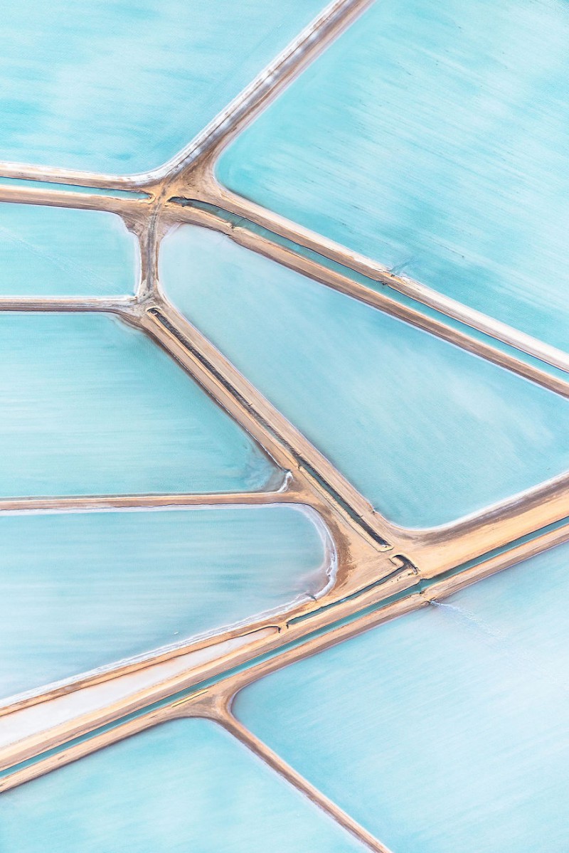 Несколько фотографий с воздуха солевых полей похожих на живопись