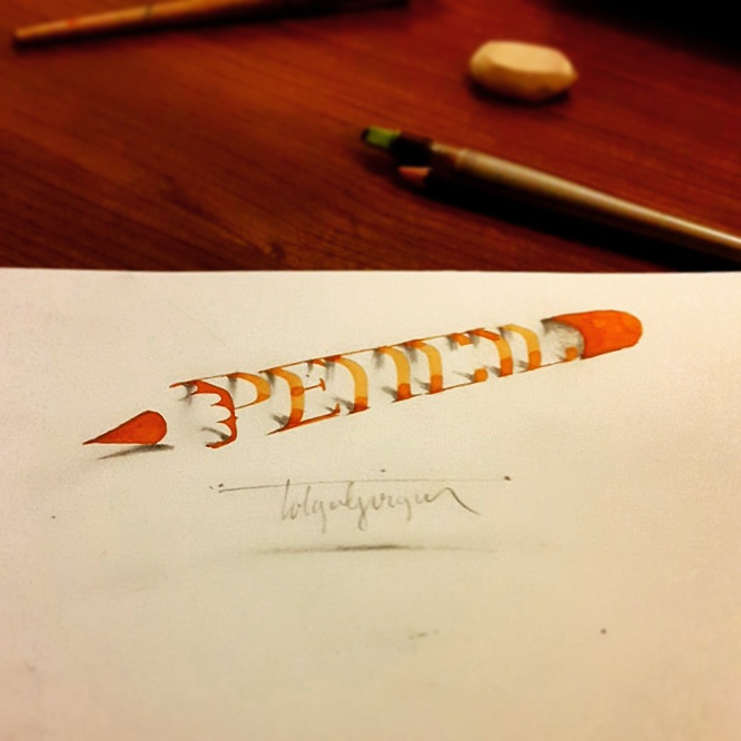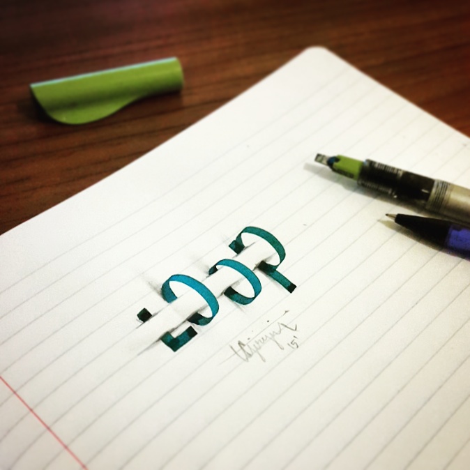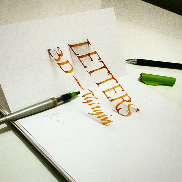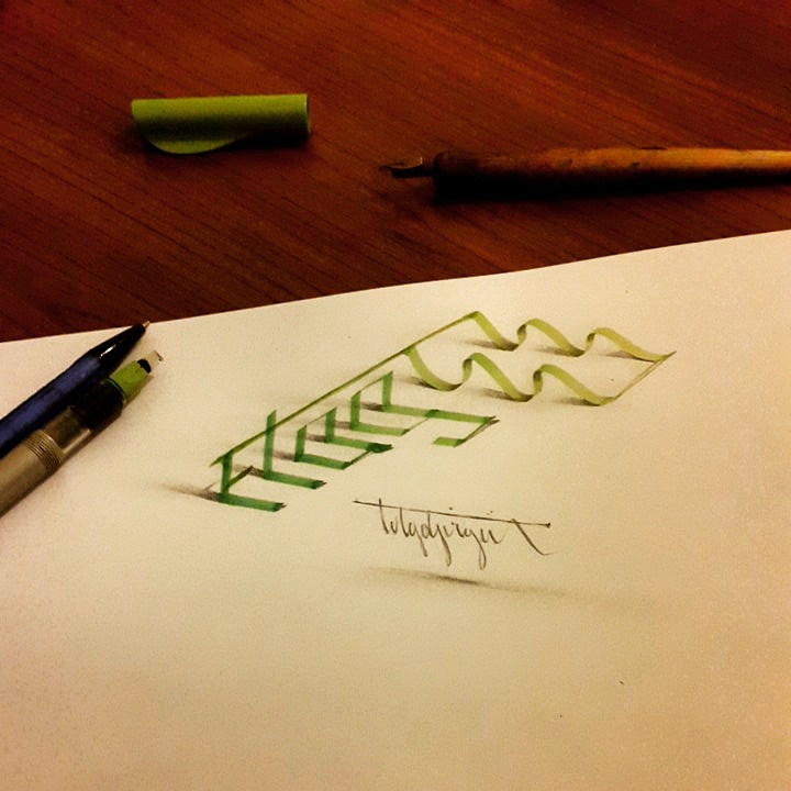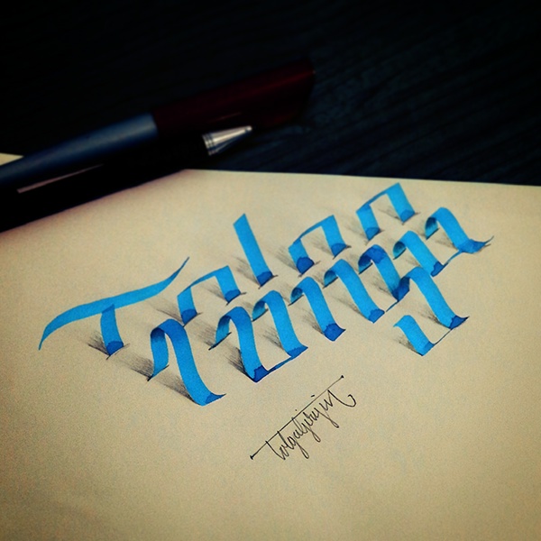 Очень классная 3d каллиграфия для визуального вдохновения