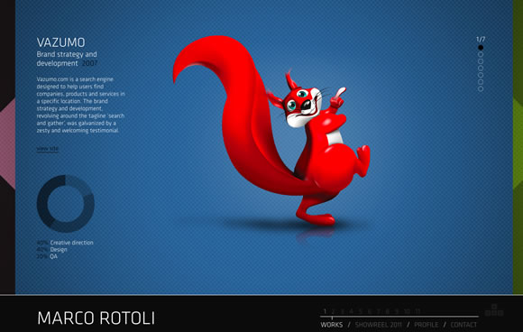 Красивый пример современного веб дизайна на HTML5. Этот сайт состоит из одних небольших слайдеров, смотрится очень современно.