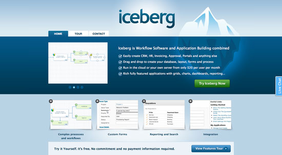 Название сайта «Айсберг», соответственно простой дизайн с нежно ледяными тонами.