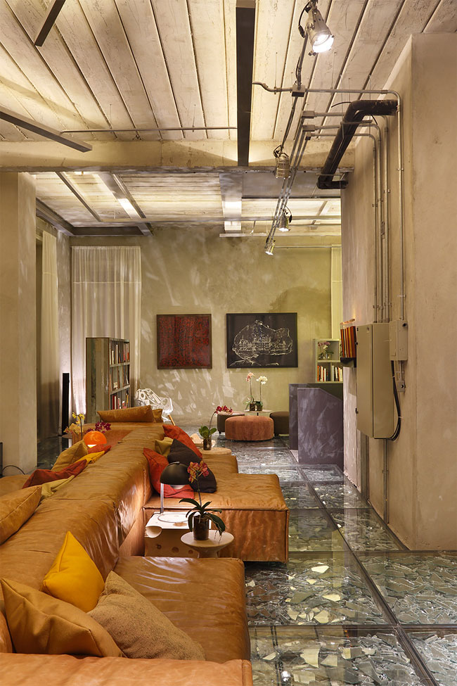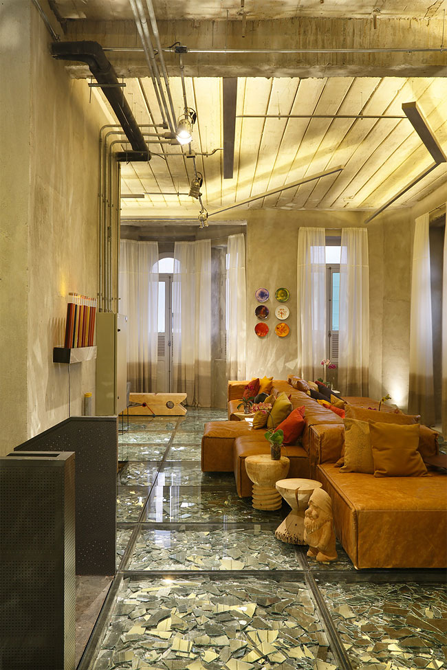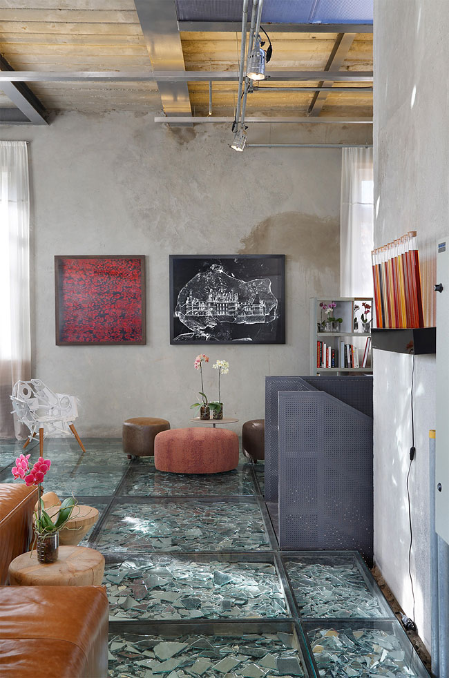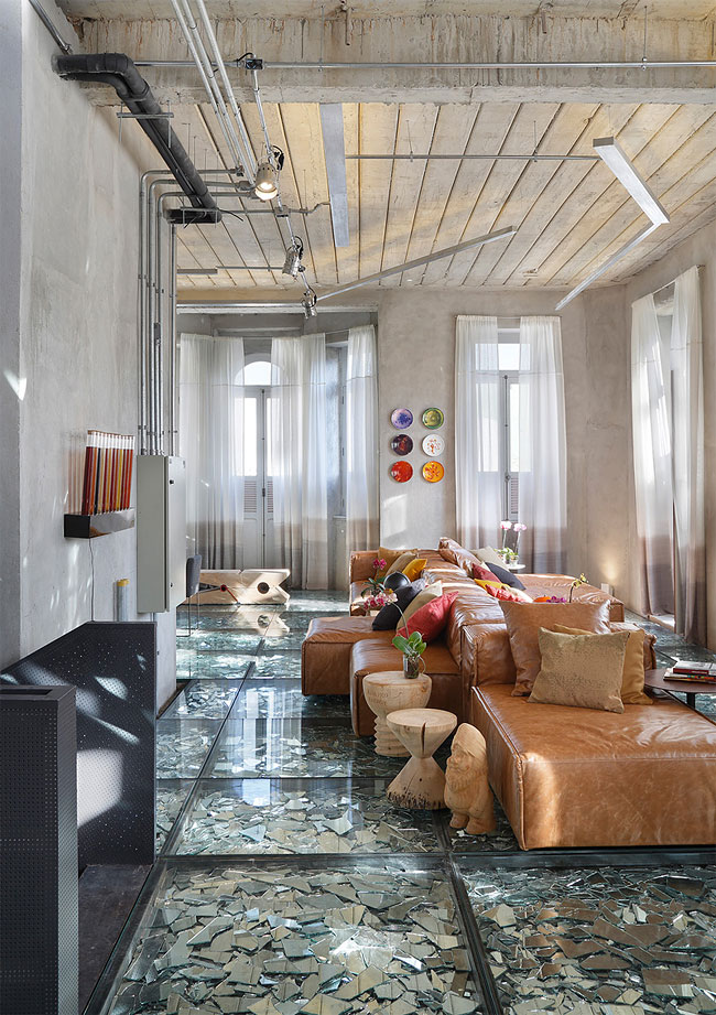Друзья, не мог пройти мимо данных фотографий. И конечно же я хочу поделиться ими с Вами. Сегодня речь пойдёт о дизайне квартиры или же дома. В данном случае дизайнеры поработали, как по моему, очень славно. А главной особенностью тут является пол из осколков разбитого зеркала, которое находится под плотно застеклённым полом. Такой дизайн пола явно не подходит для суеверных людей. Но всё же стоит внимания, так что обязательно взгляните на это чудо дизайна.
