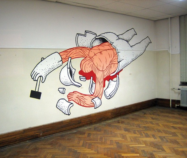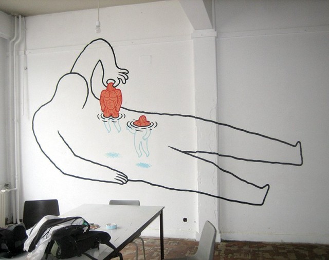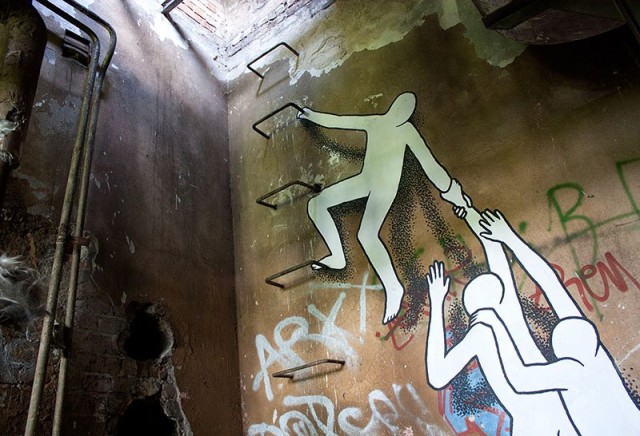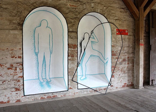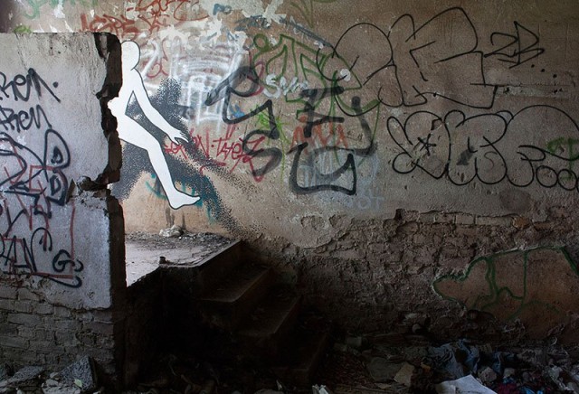 Здравствуйте, друзья. Предлагаю Вам немного отвлечься от прелестей дизайна и взглянуть на несколько шедевральных творений 3d стрит арта от художника Daan Botlek. Его загадочные силуэты на стенках заброшенного здания выглядят очень необычно и загадочно. Особенно мне понравился смысл нескольких иллюстраций. И вообще, казалось бы, в рисунках нет ничего сложного но смотрится очень креативно. Я рекомендую к просмотру данную подборку стрит арта, я уверен в том, что она Вам очень понравится.