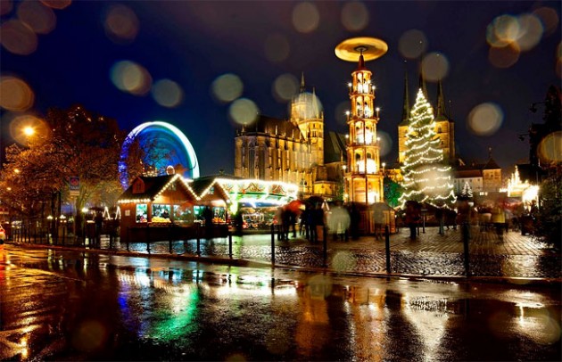 Вы наверное слышали, что в предновогодние праздники в Германии, городе Эрфурте открывает ярмарка Новогодних сувениров и сладостей, которая собирает не малое количество туристов с разных стран мира. Хотелось бы туда попасть :-) Так же на фото Вы сможете увидеть красивое колесо обозрения перед собором Девы Марии.