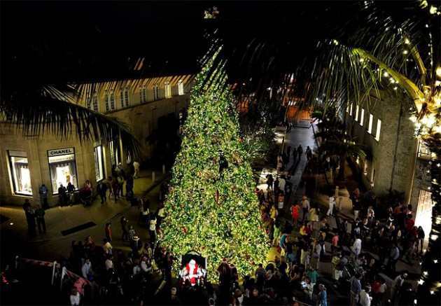 Очень красивая елка с Дедом морозов внизу расположена в Палм-Бич.