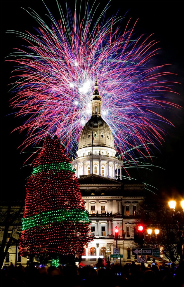 Очень красивый салют с Рождественской ёлкой в городе Лансинг, штат Мичиган.