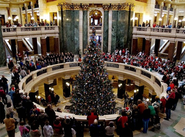 Студенты возле ёлки из Медфорда в Мэдисоне, штат Висконсин.