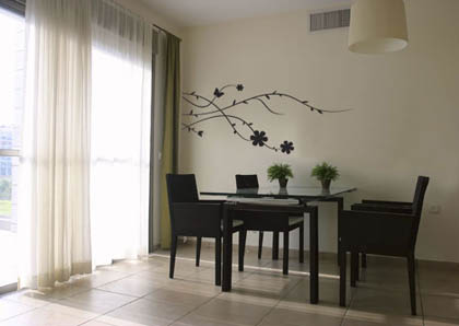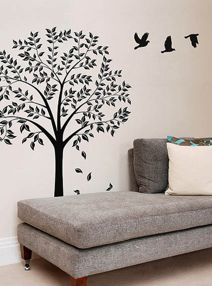 Особенно мне нравится в этом стиле оформления стен помещения — минимализм. Уж очень красиво, а наклейки ещё сильнее подчёркивают сам дизайн.