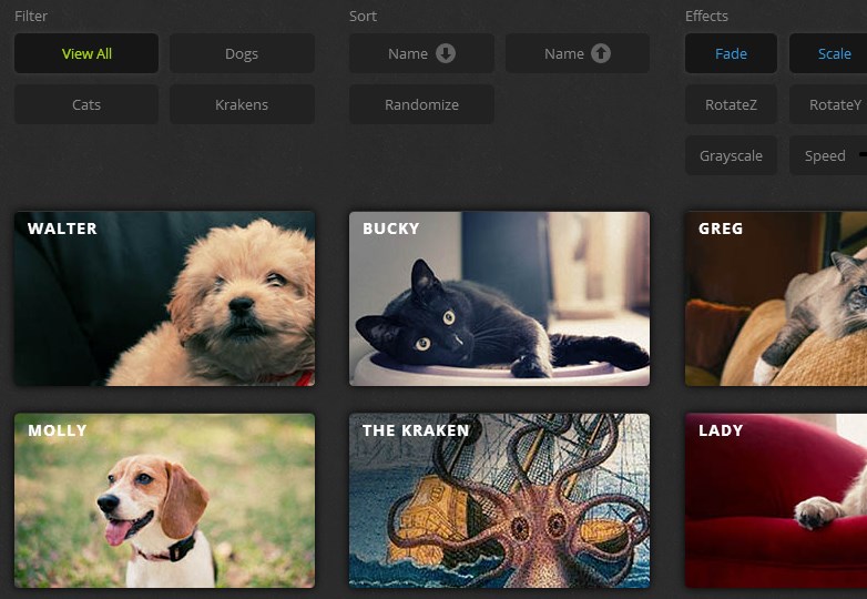 Можно отфильтровать свой контент легко с Mixitup, который использует CSS3 и jQuery .