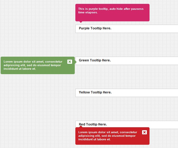 Замечательные всплывающие подсказки для любого элемента на сайте. Так же присутствует разная расцветка.