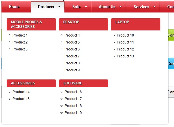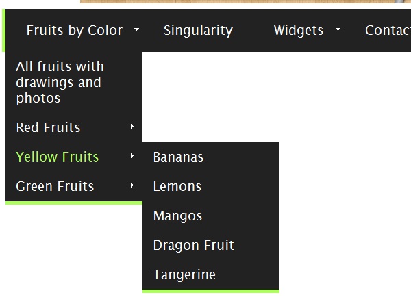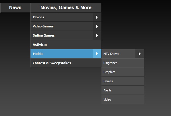 Здесь в общем представлены выпадающие и многоуровневые меню, в горизонтальном и вертикальном положении. В тоже время почти вся навигация использует скрипты JQuery, которые существенно всё украшает.