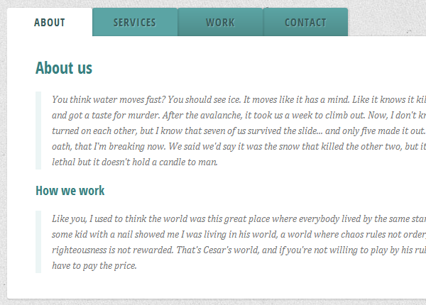 Замечательные табы текста для Вашего сайта. Очень красивая анимация и реализация. Так же присутствует 4 примера.