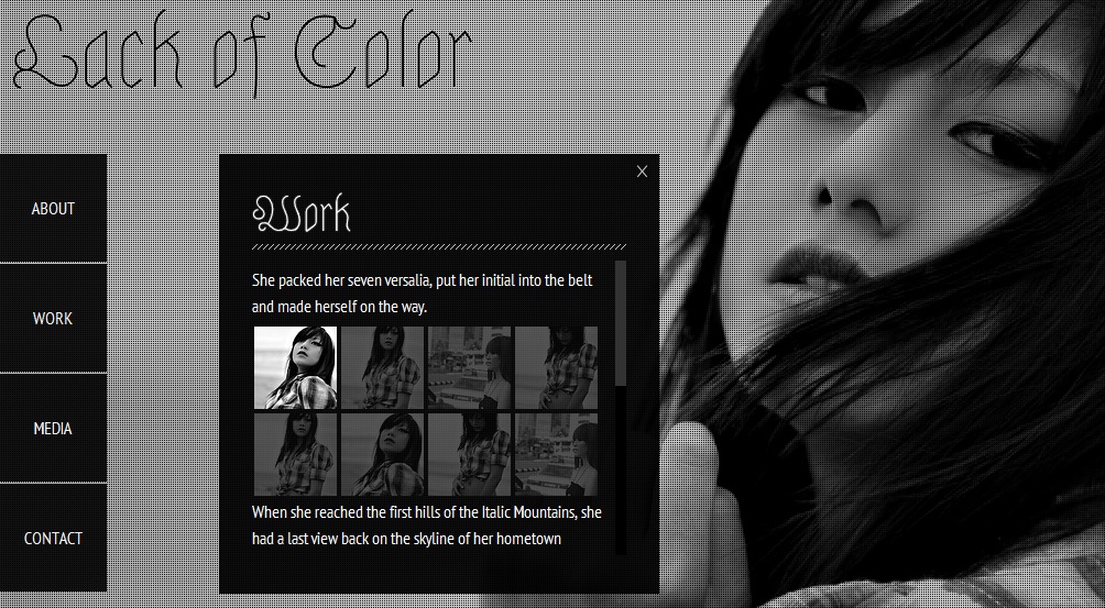 Не обычная реализация сайта-портфолио, сделанный в чёрно белом оформлении. Особенно понравилось то, что фото показываются в фоновом изображении.