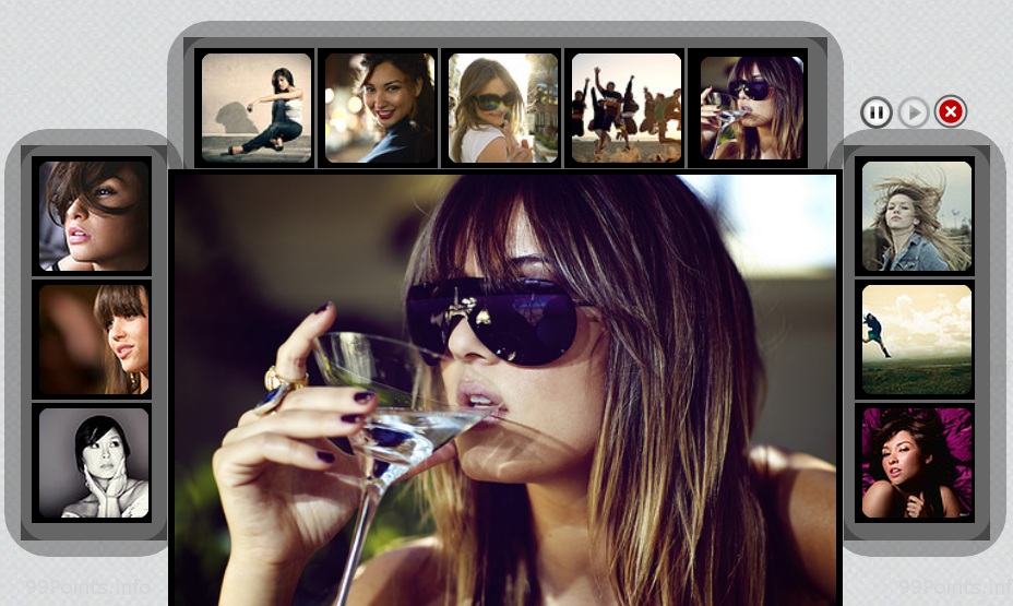 Стильная галерея с использованием JQuery. Также присутствует автоматические изменение изображений. В примере нажмите на кнопку Show Gallery в нижнем левом углу браузера.