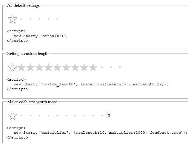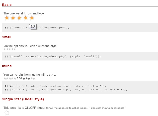 Разнообразные звёздные рейтинги для сайта с JQuery
