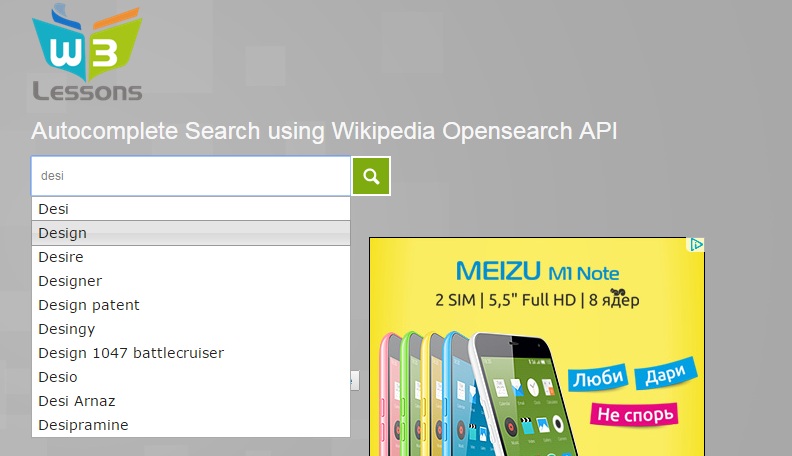 Поиск с всплывающими подсказками с Wikipedia API